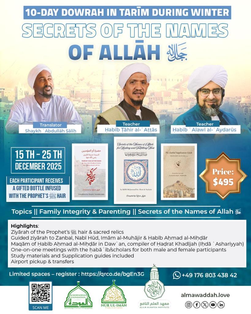 Join us for a 10-Day Dowrah in Tarīm this winter, with Ḥabāʾib and mashāyikh, exploring Family Integrity & Parenting and the Secrets of the Names of Allāh ﷻ.